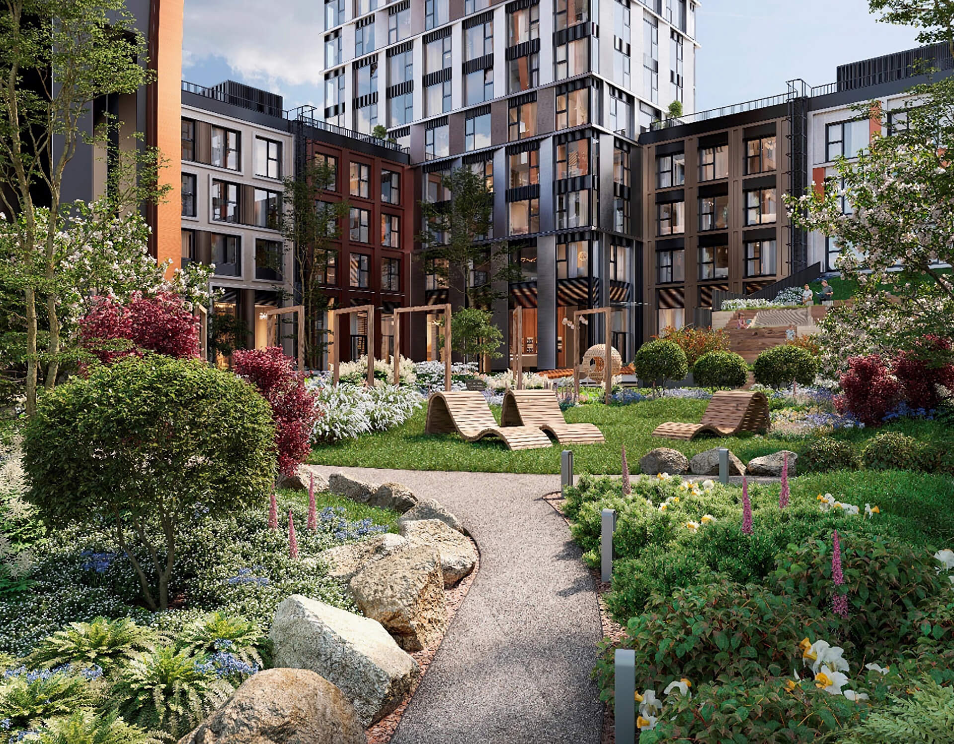 В проекте CITYZEN природа - один из создателей. Во дворе время идет медленнее, чтобы дать жителям новые впечатления от города и общества. Дизайн-бюро GAFA создало зеленый, разнообразный двор, где можно наблюдать за спокойной жизнью. Эта идея сочетает быстрый ритм города и спокойствие природы.