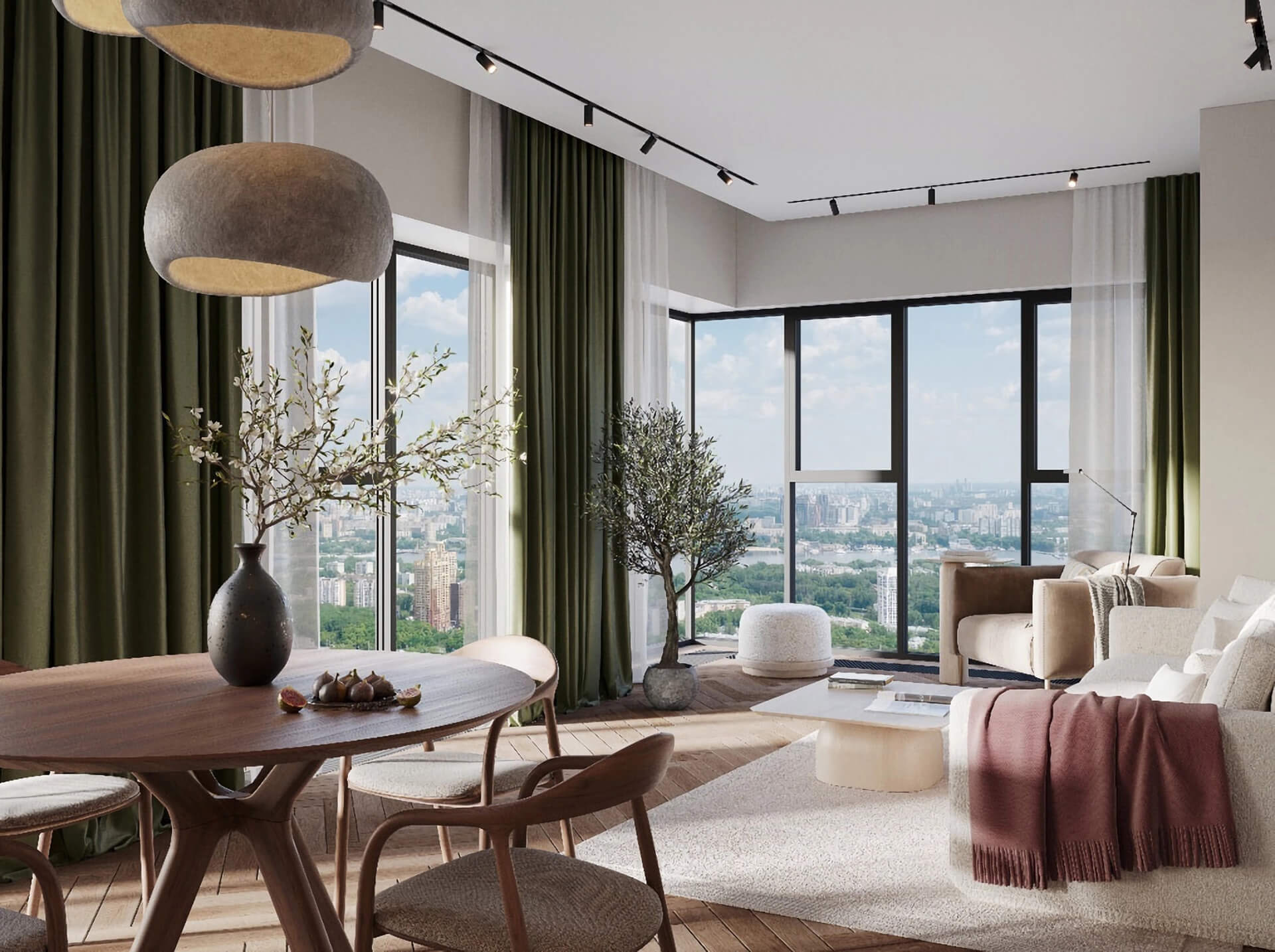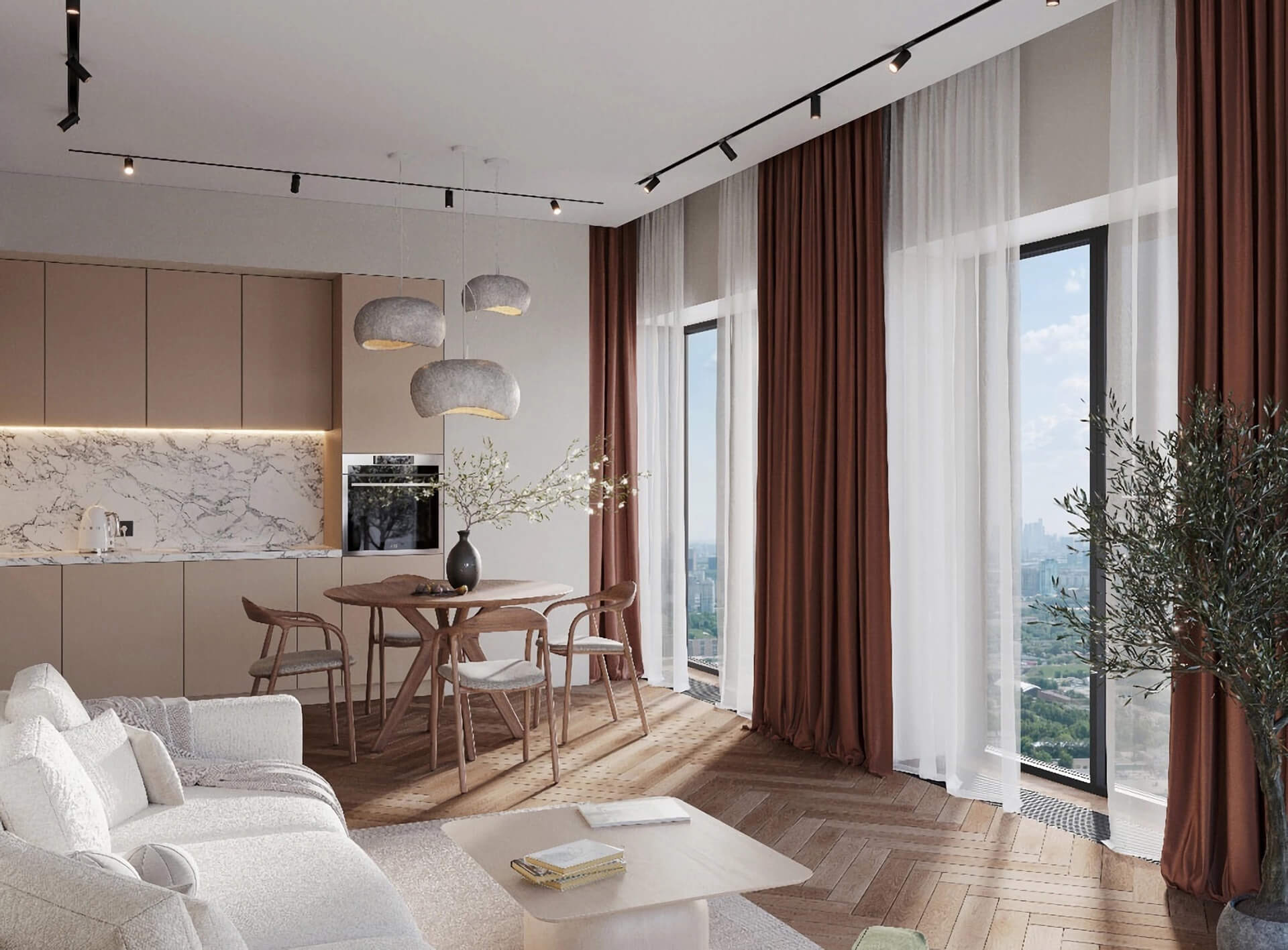 Cityzen предлагает квартиры с объединенными кухнями и гостиной, панорамными окнами, особенными планировками с террасами и балконами, а также отделкой по стандартам MR Base.